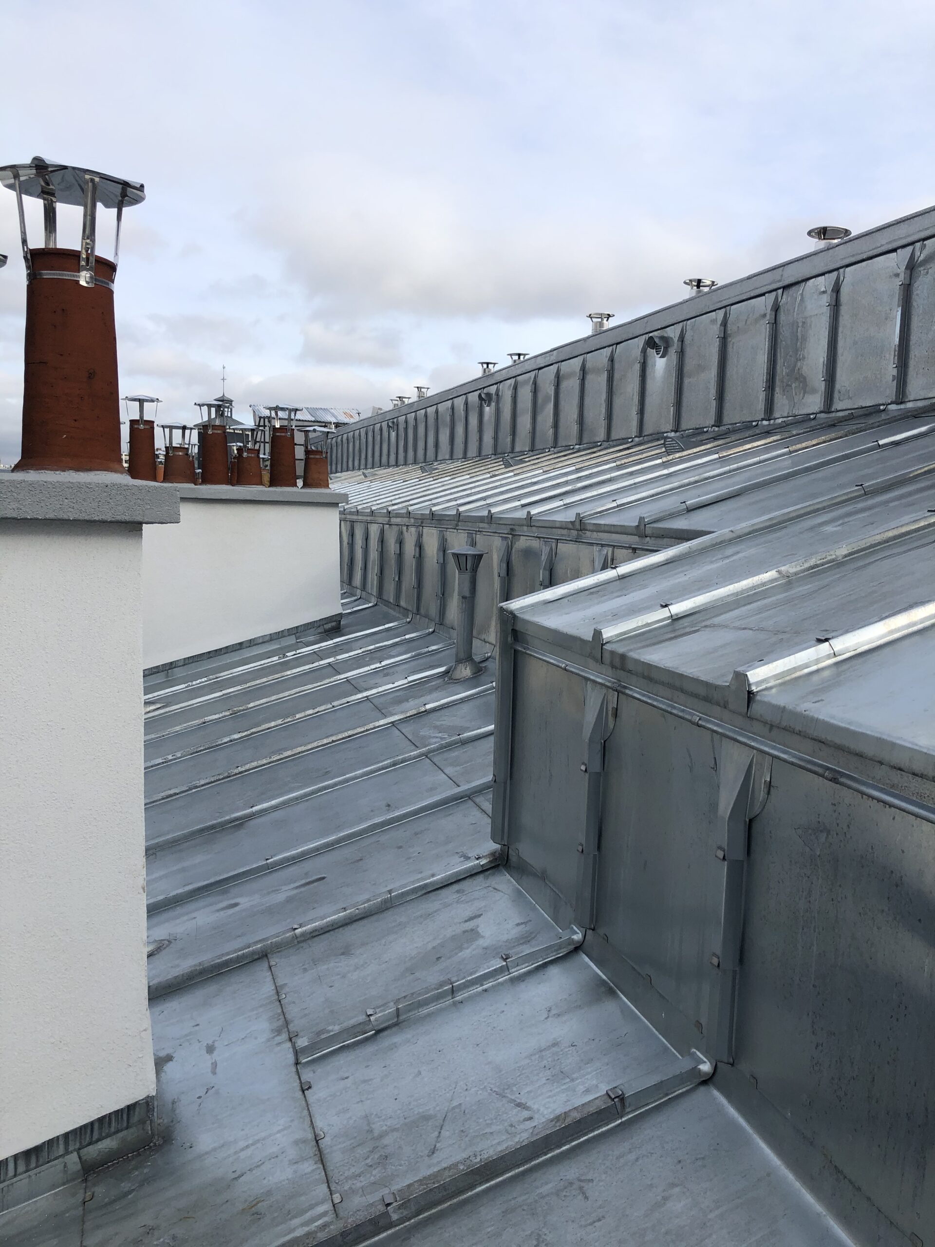 Réfection de 1 500 m² de la couverture de plusieurs bâtiments en zinc à tasseaux prépatiné quartz